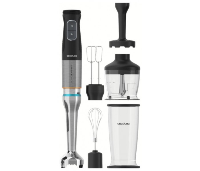 Total Destroy 1500 XL DoubleKatanas PerfectCream&Crush BLBatidora de mano de 1500 W, tecnología Dynamic blade, cuchillas de 6 hojas con recubrimiento de titanio, pie XL extralargo, campana antisalpicaduras y selector de velocidad con función Turbo. Incluye vaso de 800 ml con tapa, varillas montaclaras, varillas batidoras, pasapuré y chopper.