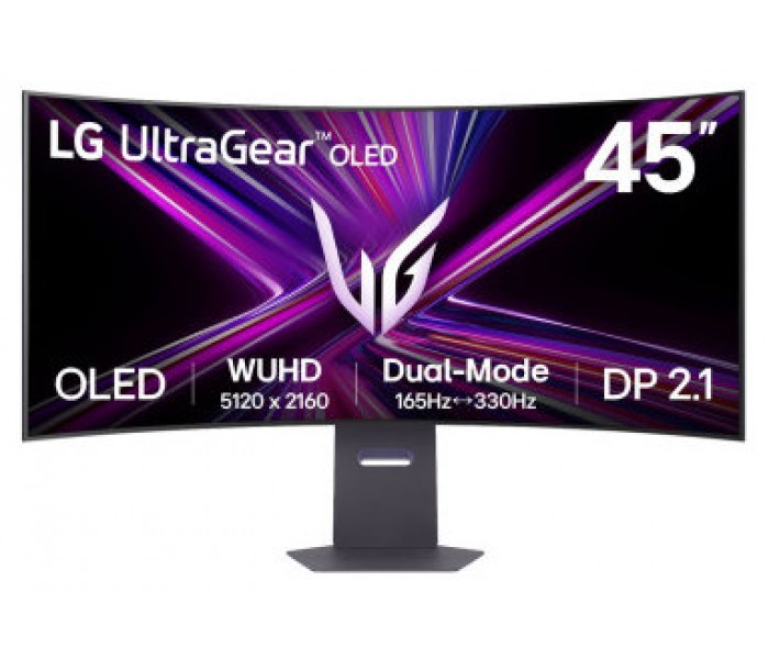 LG UltraGear. Diagonal de la pantalla: 114,3 cm (45"), Resolución de la pantalla: 5120 x 2160 Pixeles, Tecnología de visualización: OLED, Tiempo de respuesta: 0,03 ms, Relación de aspecto nativa: 21:9, Ángulo de visión, horizontal: 178°, Ángulo de visión, vertical: 178°. Altavoces incorporados. montaje VESA. Color del producto: Negro