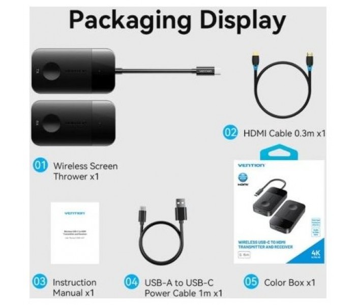 Adaptador/Transmisor de vídeo inalámbrico USB Tipo-C - HDMI Vention ADOBB