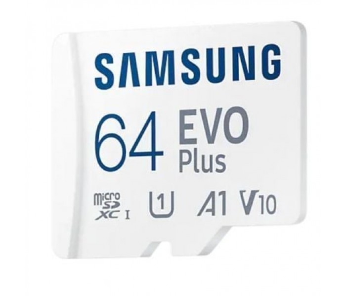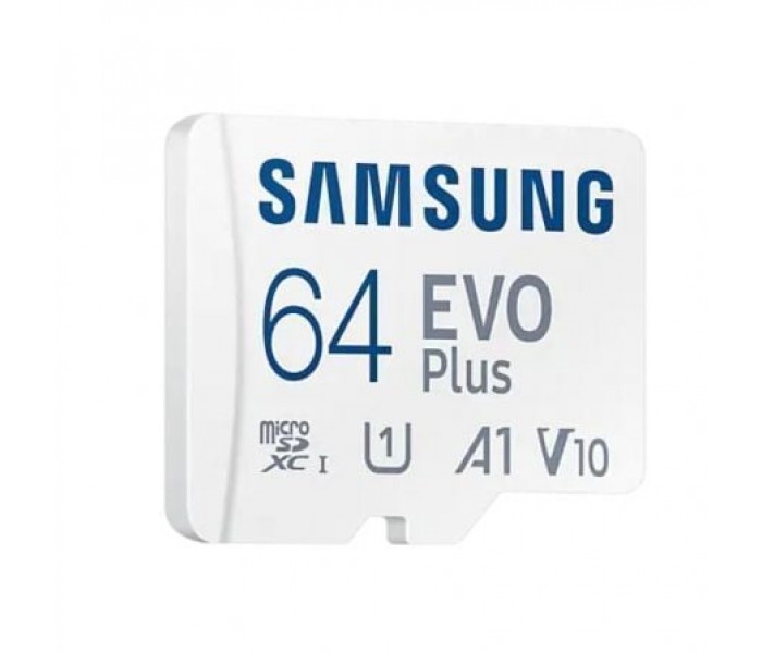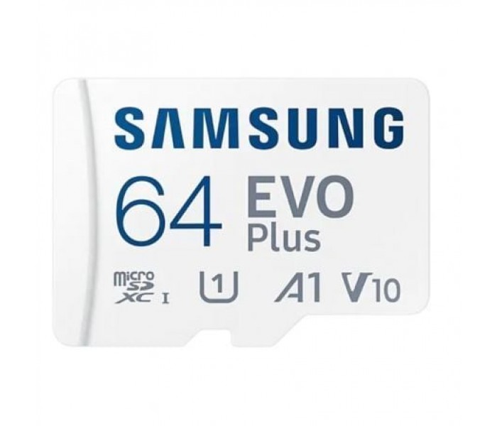 Especificaciones:. . Características generales. . Tipo de producto: Tarjeta de memoria microSDXC. Familia: EVO PLUS. Aplicación: Teléfono móvil, smartphone, tablet. Capacidad: 64 GB, (1 GB = 1 billón de bytes) * La capacidad de almacenamiento real puede ser menor que la capacidad indicada en la etiqueta. Parte del almacenamiento se puede utilizar para archivos del sistema y otros fines de control de almacenamiento.. Interfaz: UHS-I, compatible con interfaz UHS. Dimensiones: 15x11x1 mm. Peso: Aprox. 0.25g. Accesorios: Adaptador SD. . Rendimiento. . Velocidad: Lectura: hasta 160 MB/s Escritura: menor que la velocidad de lectura *La velocidad de lectura/escritura requiere dispositivos compatibles capaces de alcanzar tales velocidades y puede variar entre diferentes dispositivos anfitriones y condiciones de prueba. *Para productos incompatibles con la interfaz UHS-I, las velocidades pueden variar según las diferentes condiciones de la interfaz.. Velocidad: U3, V30, A2. . Entorno. . Voltaje: 2.7~3.6V. Temperatura de almacenamiento: -40 a 85. Temperatura: -25 a 85. . Certificación. . EMC: CE(UKCA)/FCC/VCCI/RCM