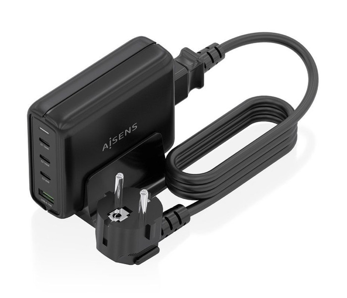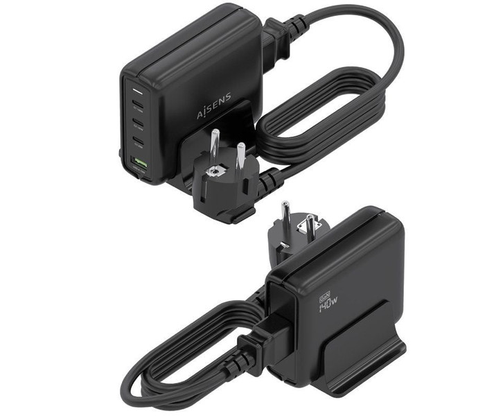 AISENS - CARGADOR SOBREMESA GaN 140W, 3xUSB-C PD3.1 QC4.0 QC5.0, 1xUSB-A QC3.0, NEGRO