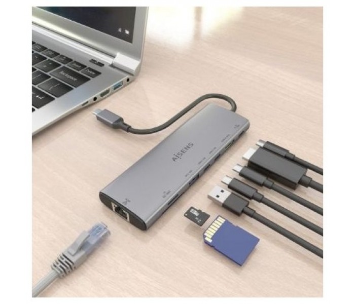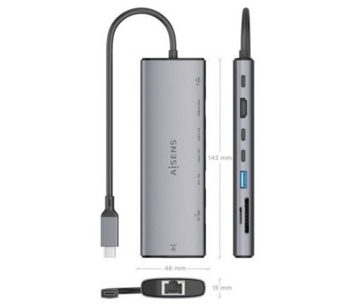 USB-C DOCK AISENS 8 EN 1 HDMI RJ45 USB-A 10G 2XUSBC 10G SD MICRO SD PD 100W