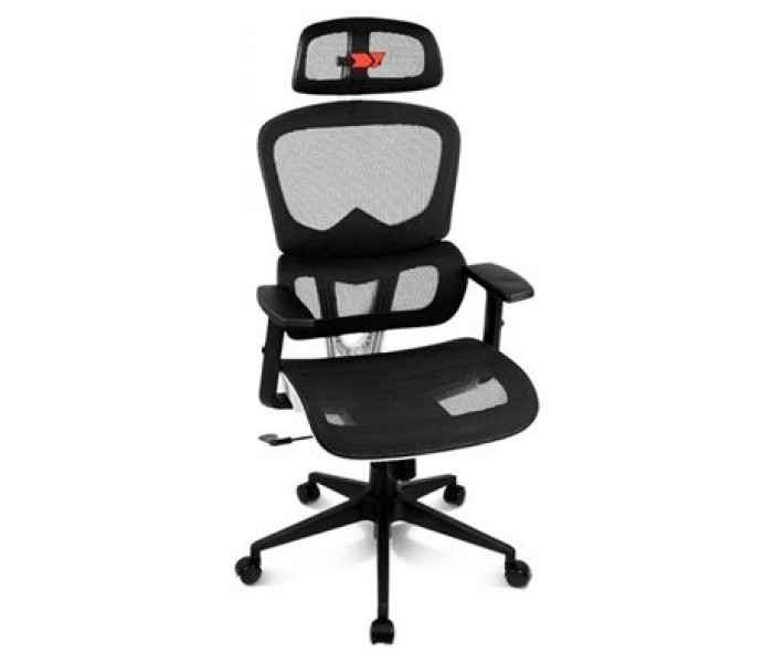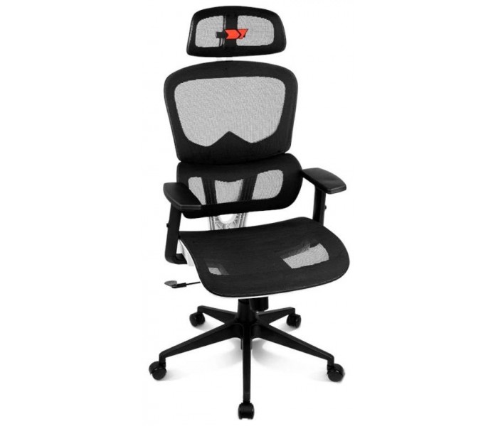 Características | - Material externo: Malla tensada de alta calidad - Material interno: Estructura de polímeros reforzados - Reposabrazos: Ajustable 2D con acolchado extra - Base Material: nailon | Acabado: negro mate | Dimensiones: 64 cm - Ruedas Material: nailon + PU | Color: negro - Elevador: Pistón de gas de 80 mm | Clase 4 - Funciones: Reclinación, giro y función de bloqueo - Cojines: Cervical y lumbar integrados Dimensiones y peso - 61 x 120-128 x 64 cm (ancho x altura x profundidad) - 14.7 kg - Peso máximo soportado: 150 kg (Peso máximo permitido con el respaldo en posición vertical) |