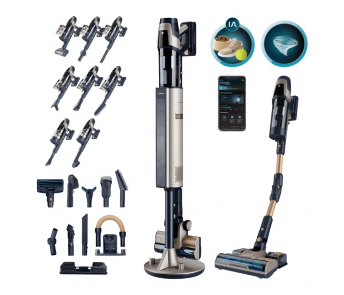 Conga Rockstar 11500 Odyssey Station Connected IAArrasa sin esfuerzoEleva el nivel de limpieza con sus 300 AW y su motor de 850 W, una potencia impresionante que permite limpiar en profundidad, sin esfuerzo y en menos tiempo.Vaciado automáticoOlvídate de tocar el polvo con su base de autovaciado de 1,7 L, que vacía el depósito por ti para que te olvides de la alergia.Batería siempre listaSu estación lo hace todo más fácil: no solo vacía el depósito por ti, sino que también carga automáticamente la batería para que el aspirador esté siempre listo.IAIA = Limpieza precisaRockstar no solo destaca por su potencia, su chip con inteligencia artificial, ajusta la potencia automáticamente para conseguir una limpieza precisa, optimizando además la autonomía.Gestión inteligente de potenciaLimpia con precisión sin hacer nada. El aspirador mide la suciedad y detecta tus movimientos para ajustar la potencia de forma automática.Pulsar BatteryHasta 100" de autonomíaGracias a su Pulsar Battery y 100 minutos de autonomía podrás limpiar toda tu casa de una sola pasada, sin detenerte ni preocuparte por recargar.