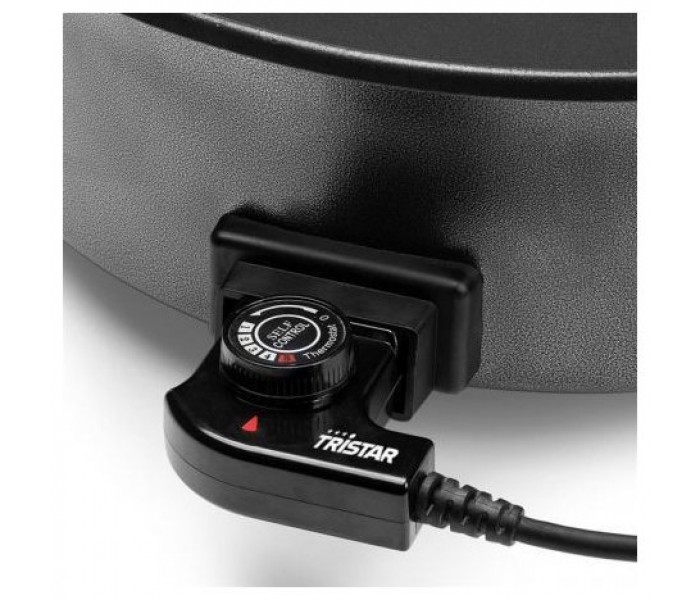 La sartén eléctrica Tristar PZ-9145 es una sartén versátil y eléctrica grande que se puede utilizar para diversos fines. Gracias al accesorio divisor, podrá preparar varios platos a la vez. Puede ajustar con facilidad la temperatura que desee hasta un máximo de 250⁰ C. La sartén eléctrica también se puede usar en el camping.