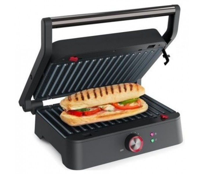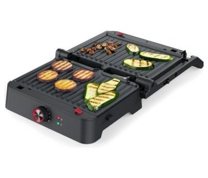 Placas desmontables - Abertura de 180ºTiene una superficie de cocción de 27,5 x 18 cm, termostato regulable y, gracias a su apertura de 180º, también puede utilizarse como parrilla de mesa. Al ser desmontables las placas, su limpieza después del uso es muy fácil. 1800 vatios de potencia.