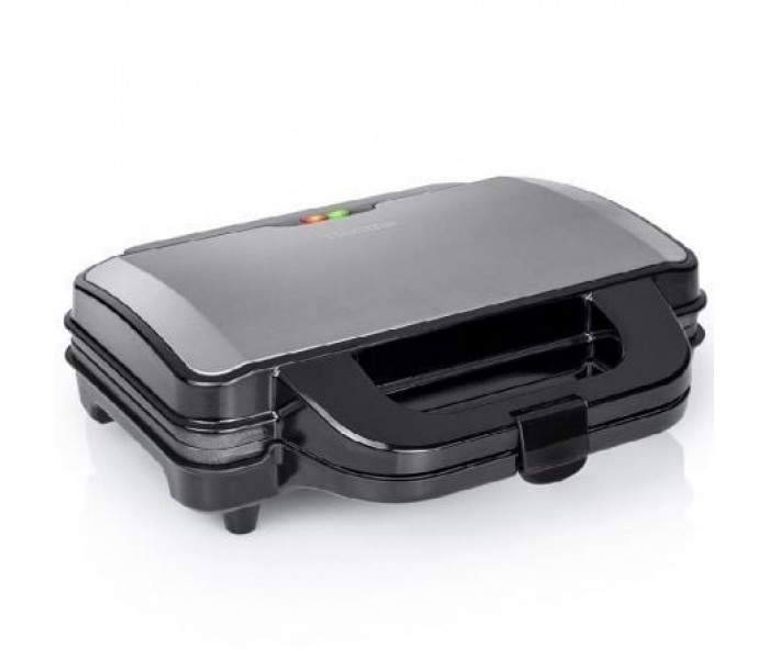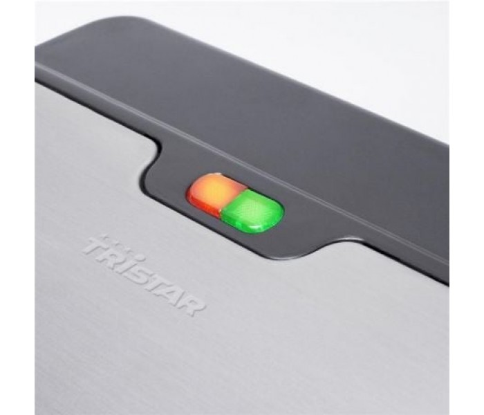La sandwichera Tristar tiene un tamaño compacto, por lo que ocupa poco espacio para guardarla. La tapa tiene un cierre de seguridad y un compartimento para cable que le permite guardar la sandwichera tanto horizontal como verticalmente. Tiene un diseño elegante, gracias a la tapa de acero inoxidable, y podrá limpiarla con facilidad, gracias al recubrimiento antiadherente que garantiza que no se pega nada a las placas.Fácil de usar