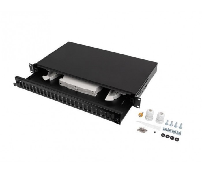 PATCH PANEL LANBERG 1U 19" FIBRA OPTICA 24 PTS SC DUPLEX O 24 LC QUAD BK+ACC