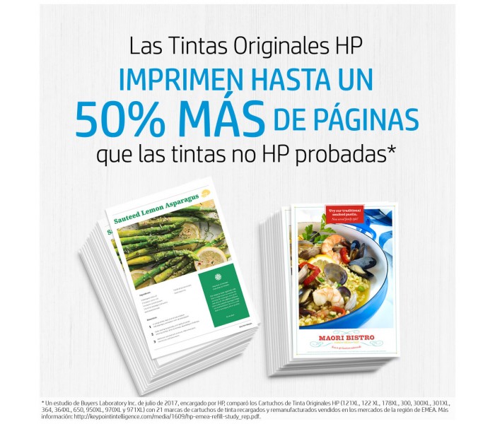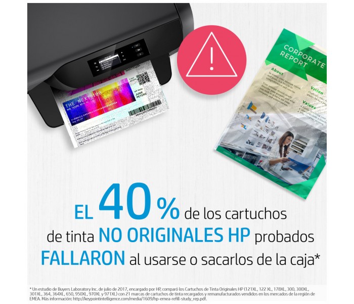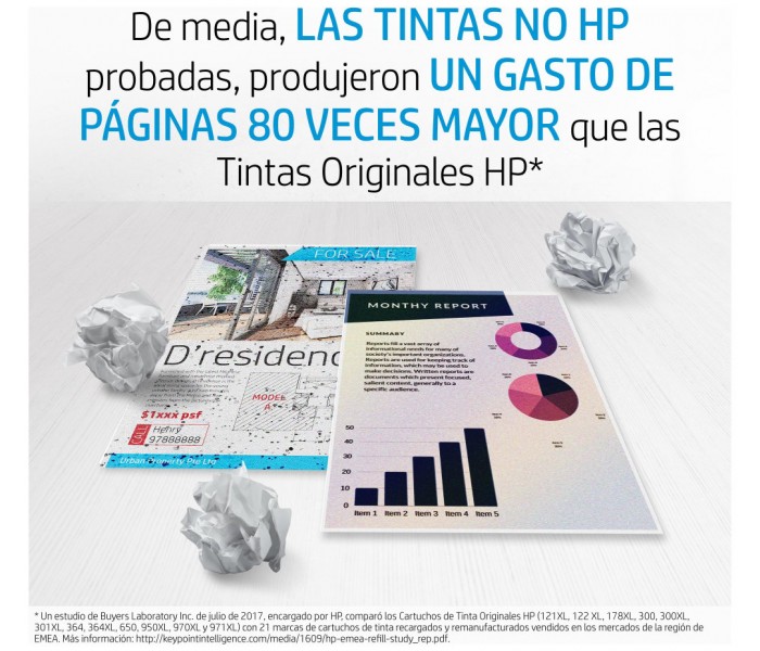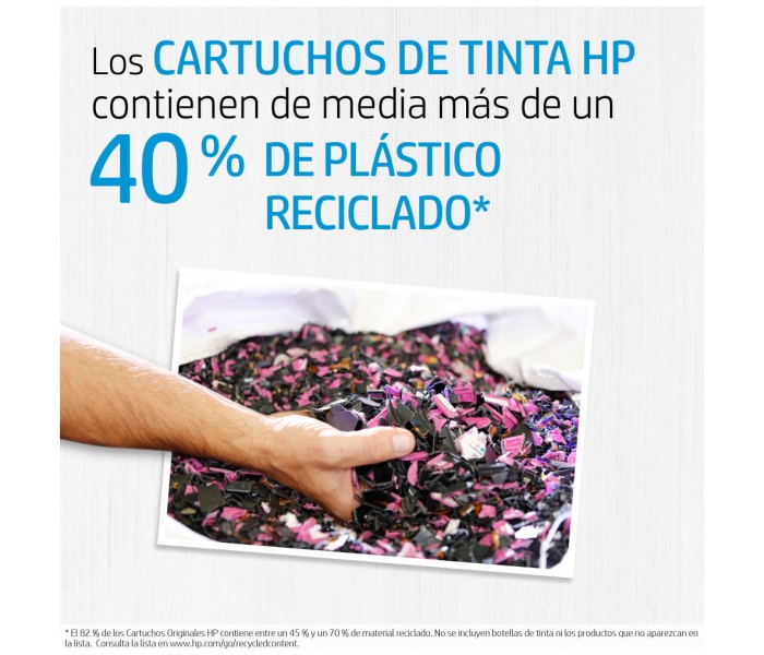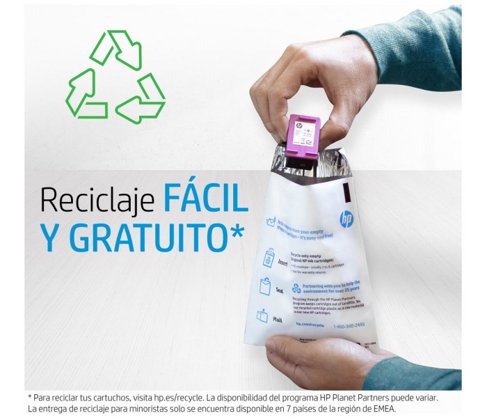 Una opción perfecta para los clientes de pequeñas empresas y de oficinas domésticas que imprimen con frecuencia, crean textos, gráficos e imágenes en color de alta calidad, y reciclan.Imprime textos negros y gráficos en color de alta calidad que destaquen en tu entorno empresarial y aprovecha la fiabilidad de sus funciones gracias a los cartuchos de tinta Originales HP de fácil reciclaje.[1]