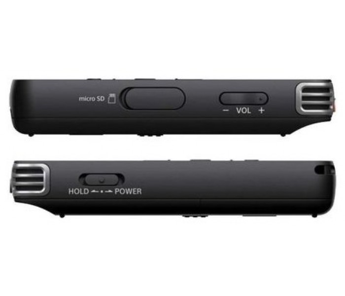 El ICD-PX470 cuenta con una memoria integrada de 4 GB, lo que equivale a un tiempo máximo de grabación de 59 horas y 35 minutos en MP3 estéreo a 128 kbps. Puede ampliar la capacidad de memoria con una tarjeta micro SD y obtener hasta 32 GB adicionales, lo que le permite grabar más de 536 horas (Micro SD 32 GB, MP3 a 128 kbps).