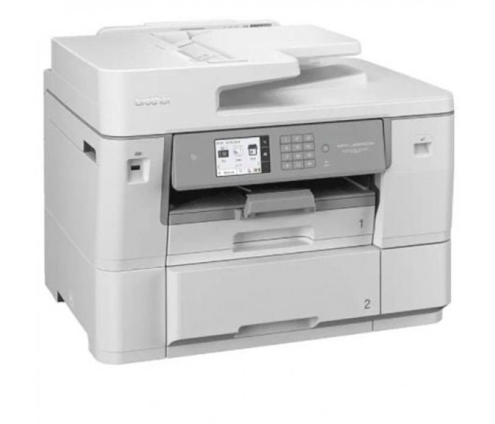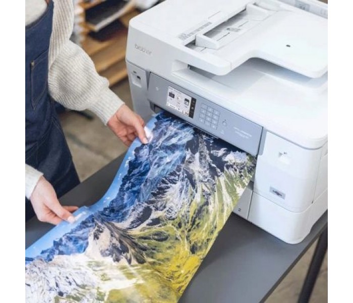 | Características generales | - Tipo de impresora: Color - Funciones: Impresión, Copia, Cortar, Escaneado, Fax - Pantalla: color táctil - Tamaño de pantalla: 8.8cm - Tamaño máximo del papel: A3 - Memoria: 512MB - Tecnología: Inyección de tinta Conectividad: - Conexiones: Red cableada, WiFi, USB - Interfaz local: Hi-Speed USB 2.0, USB 2.0 Host (Front) - NFC: Lector NFC integrado. Los NFC estándares soportados incluyen: (ISO14443 Type A) MIFARE Standard/Plus/ Ultralight/Ultralight C/DESfire my-d move, Tag-it (ISO15693 Type B) - Compatibilidad: AirPrint, Mobile Connect, Brother Print Service Plugin, Mopria - Interfaz de red cableada: 10Base-T/100Base-TX - Interfaz de red inalámbrica: 2.4GHz IEEE 802.11 b/g/n & 5GHz IEEE 802.11a/n |