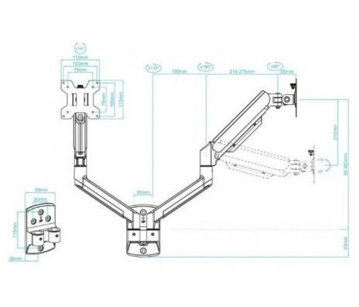 - Peso soportado de pantalla: Mínimo 2 kg, Máximo 10 kg por cada brazo