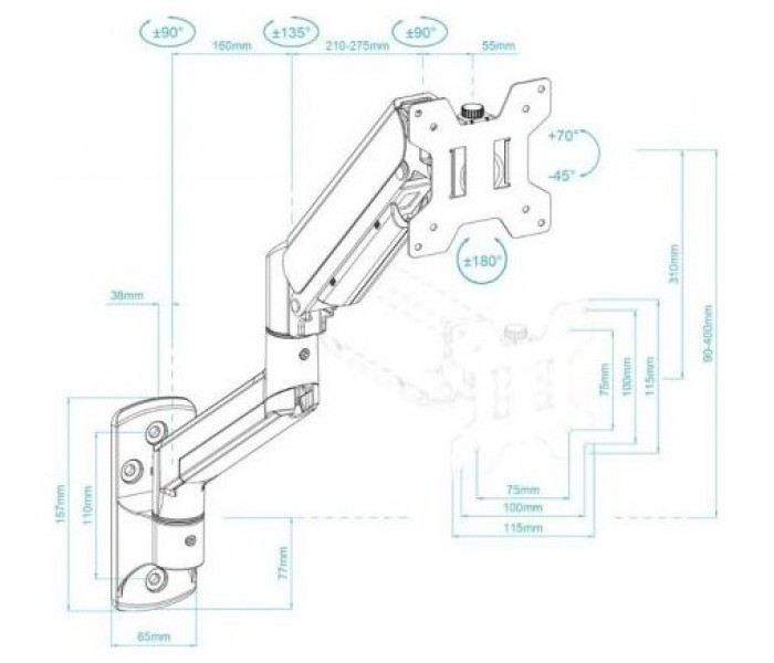 - Peso soportado de pantalla: Mínimo 2 kg. Máximo 10 kg