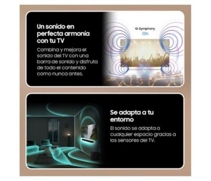 - Compatibilidades: SmartThings App, Q-Symphony, Tap Sound, Chromecast, Spotify Connect (Hi-Fi), AirPlay, Dolby ATMOS inalámbrico, Roon Tested
