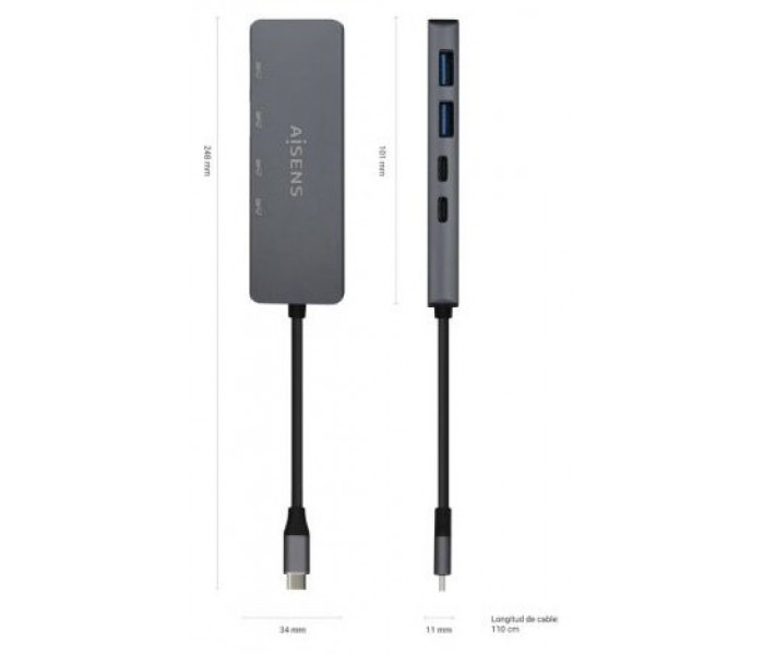 Hub USB Tipo-C Aisens A109-0694/ 2xUSB/ 2xUSB Tipo-C/ GrisAISENS – Hub USB 3.2 Gen2 10G USB-C, USB-C..