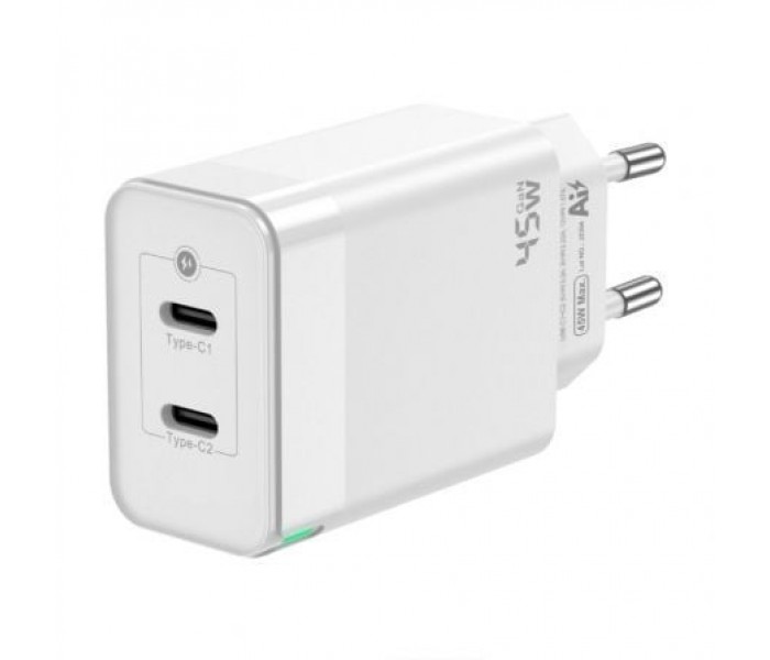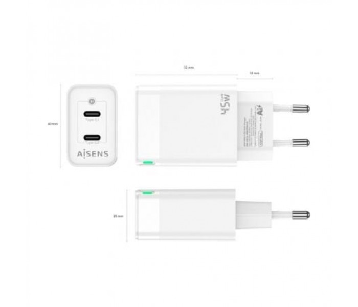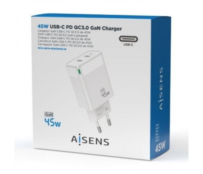 CARGADOR GAN AISENS 45W 2XUSB-C PD3.0 QC4.0 BLANCO