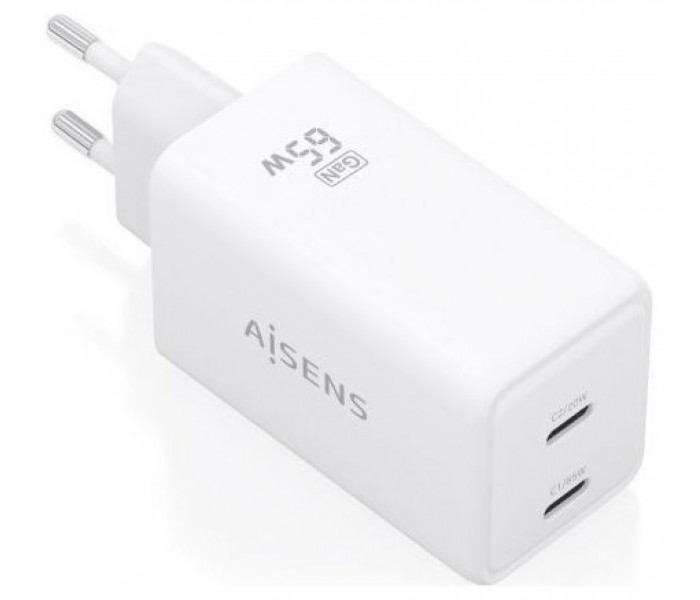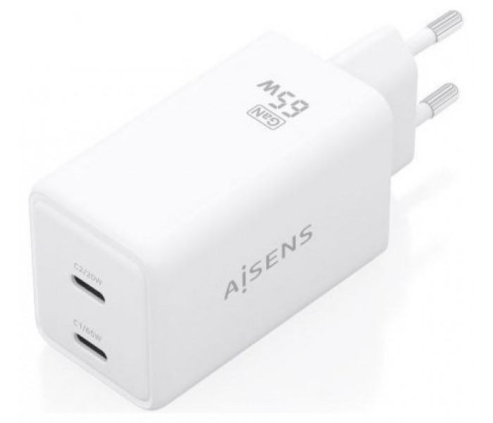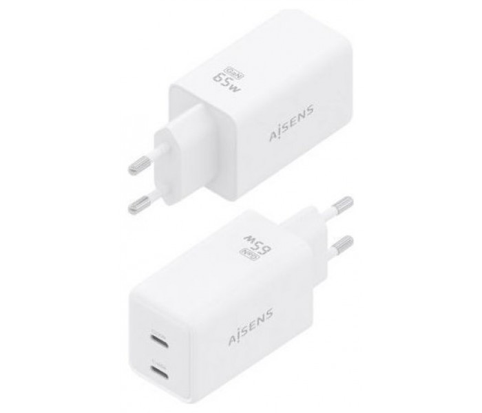 AISENS - CARGADOR GaN 65W, 2xUSB-C PD3.0 QC4.0, BLANCO
