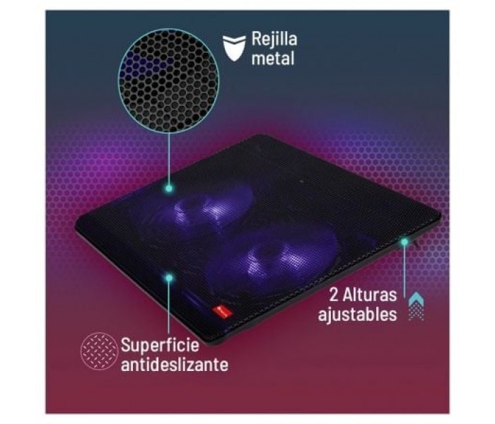- Base de refrigeración para portátil equipado con dos grandes ventiladores (12,5 x 12,5 cm)