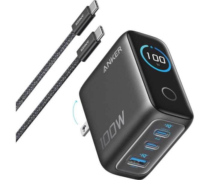 CARGADOR DE PARED ANKER 100W 3 PUERTOS CON PANTALLA INTELIGENTE NEGRO