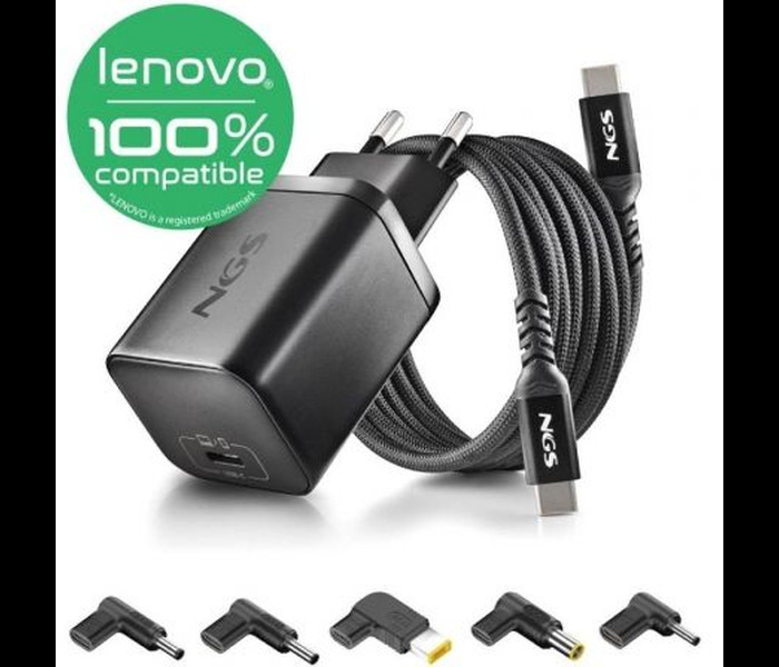 PACK CARGADOR GAN USBC DE 65W + CABLE 1,5M USBC + 5 CLAVIJAS PARA PORTÁTIL MARCA LENOVO