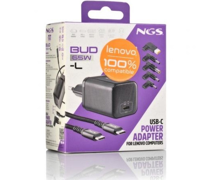 - NGS BUD 65W-L te ofrece una carga rápida, estable y segura, protegiendo tus equipos y garantizando el máximo rendimiento en cualquier lugar.