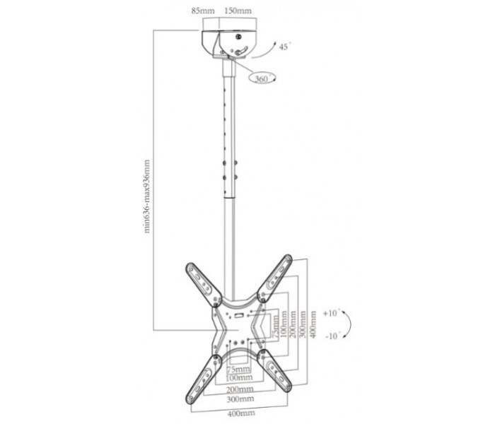 SOPORTE TECHO TOOQ PANTALLAS 43-86" XL NEGRO
