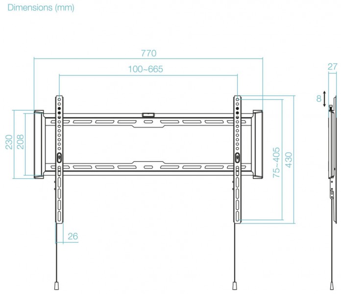 - Compatible con VESA: 200x200, 300x200, 400x200, 300x300, 400x300, 400x400, 600x400