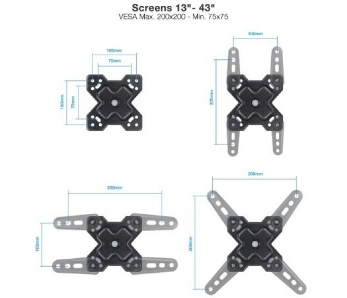 Compatible con VESA: 75x75, 100x100, 100x200, 200x100, 200x200