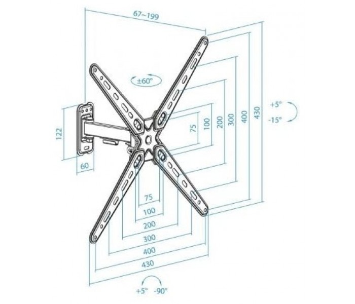 Compatible con VESA: 75x75, 100x100, 100x200, 200x100, 200x200, 300x200, 400x200, 300x300, 400x300, 400x400