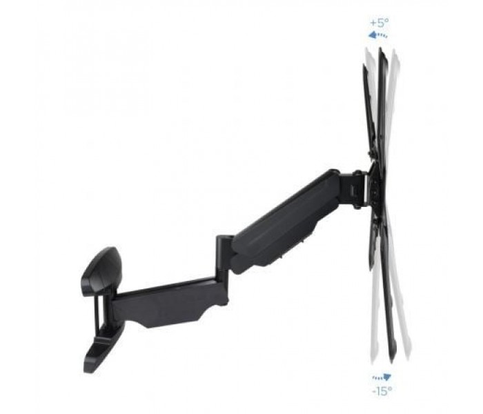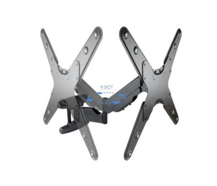 Descripción:. Soporte de fijación en pared para pantallas planas (entre 23"" y 55"") y hasta un máximo de 30 kg de peso.. Fabricado en metal de alta resistencia, siempre con la calidad de los productos TooQ.. Especificaciones:. Para pantalla (monitor / plasma / LCD / LED) 23""-55"". VESA Máximo: 400x400 mm / Compatible con los formatos de fijación de pantalla VESA 75x75, 100x100, 200x100, 200x200, 300x300, 400x200, 400x300, 400X400 mm. Carga: 5 kg - 30 kg. Nivelación de pantalla: +3º / -3º. ángulo de Inclinación: +5º / -15º. ángulo máximo de giro: -90º / +90º. Brazo articulado con pistón de gas. Compatible con tv curvo. Distancia de la pared: 61 mm - 565 mm. Incluye gancho recoge cables. Color: Negro. Contenido del Paquete:. 1 x Soporte. 1 x Kit montaje (No incluye herramientas). 1 x Manual de instalación