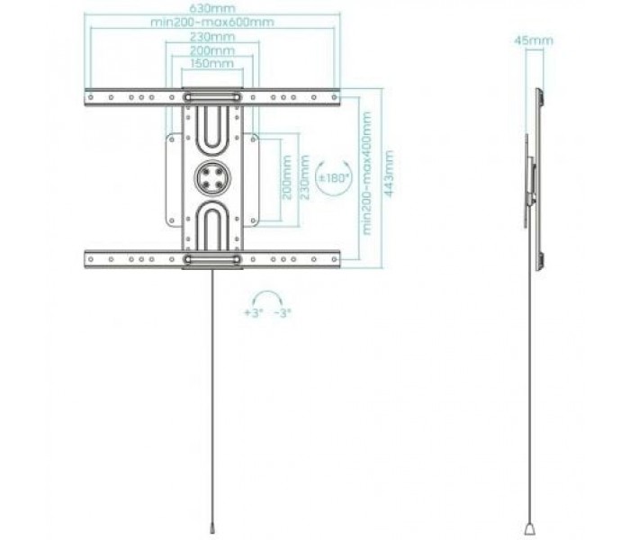 - Compatible con VESA: 200x200, 300x200,400x200, 300x300, 400x300, 350x350, 400x400, 400x600, 600x400
