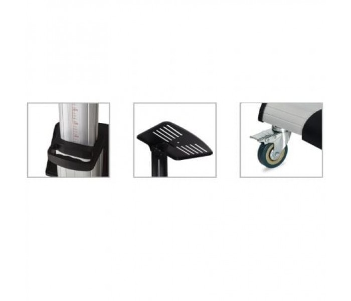 - Ruedas con freno que permiten fijar el soporte al suelo, evitando desplazamientos no deseados.