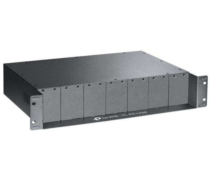 TL-FC1420 Chasis de montaje en bastidor de 14 ranuras 14 bahías para albergar hasta 14 convertidores de medios Fuente de alimentación redundante opcional para garantizar un funcionamiento fiable sin interrupciones Intercambiables en caliente, reemplazo fácil y rápido del convertidor Dos ventiladores de refrigeración montados para una mejor ventilación El chasis para montaje en rack de 14 ranuras TL-FC1420 está especialmente diseñado para acomodar 14 convertidores de medios de TP-Link para suministro de energía central, ahorrando espacio y cables de energía. El funcionamiento continuo es de gran importancia para la comunicación por fibra, por lo que el chasis está equipado con una fuente de alimentación redundante opcional y una función de intercambio en caliente que permite instalar / quitar el convertidor sin apagar el chasis. Además, para estabilizar el rendimiento y prolongar la vida útil, se instalan dos ventiladores de refrigeración internamente. Junto con los convertidores de medios Gigabit / Fast Ethernet de la serie FC, TL-FC1420 es la solución ideal para su red de conversión de medios. * TL-FC1420 es compatible con TL-FCXXX ver: 1.0 y superior. ** TL-MCRP100 V2 se puede utilizar como módulo de fuente de alimentación de TL-FC1420.
