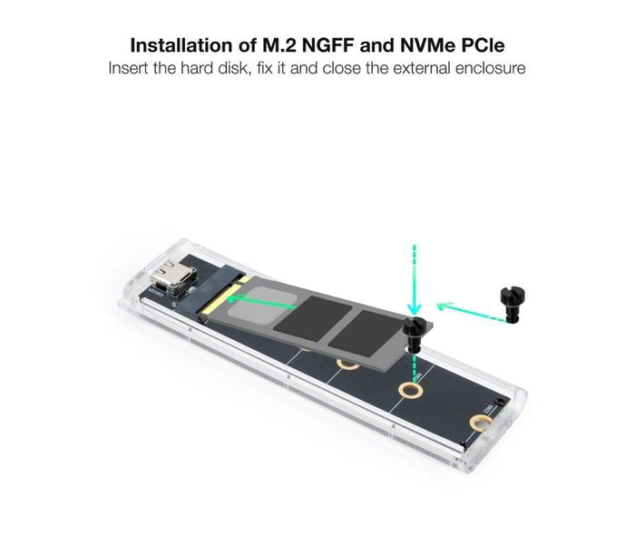 ¡Nuestra caja externa se desnuda para que puedas ver todos sus circuitos funcionando!. Guarda tus juegos, partidas, o cualquier otro dato, lucirán espectaculares en nuestra caja externa para SSD M.2 NGFF/NVME. ¡Además tiene luz led RGB!. . Especificaciones:. . Conexión USB-C (USB 3.1 Gen2 10Gbps). Apertura fácil, sin tornillos. Incluye led de encendido/actividad. Leds RGB. Compatible con M.2 NGFF y NVMe PCIe 2230/2242/2260/2280. Soporta SSD de hasta 2 TB. Compatible con Windows, MacOS y distribuciones Linux. Incluye 2 cables: USB-C a USB-C y USB-C a USB-A. Color: N/A. Material: ABS. Medidas del producto: 104x32x11 mm. Peso neto: 27 gr. Peso bruto: 220 gr.. Medidas del embalaje: 115x90x35 mm